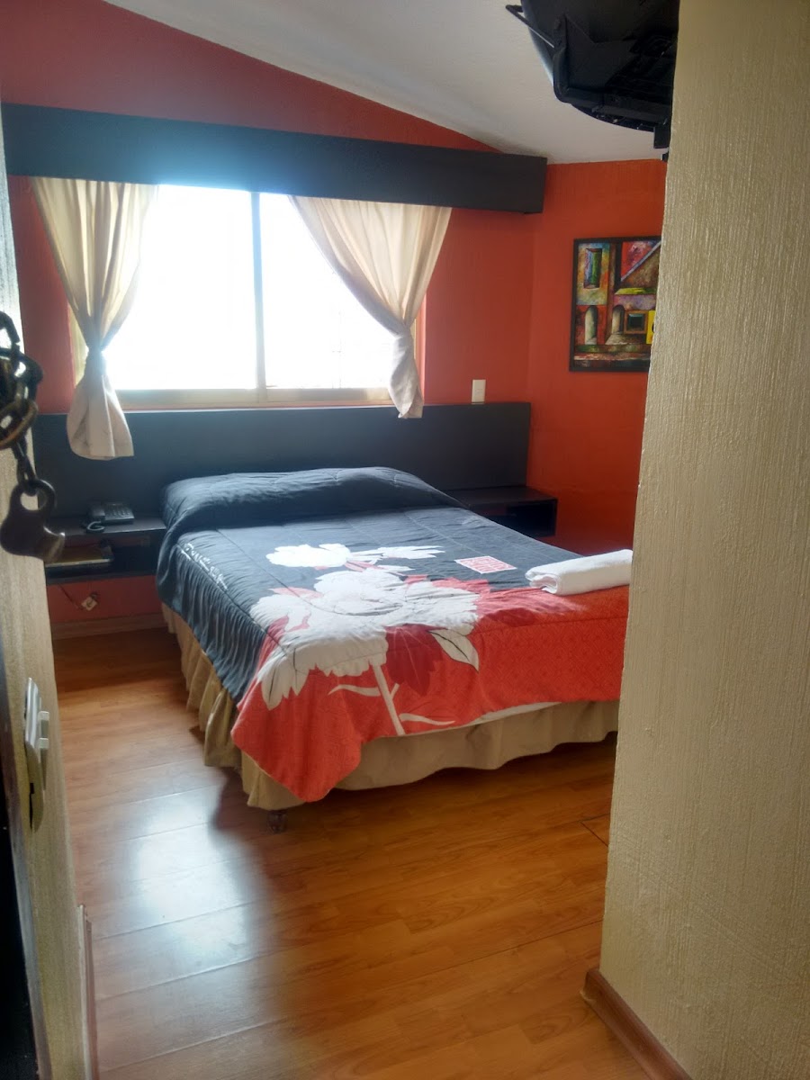 Renté por 15 días una habitación doble por $2500 MX (El precio por 30 días es de $3500 de la doble y $2500 de la individual, precios 2022) la cual incluía frigobar, microondas y estacionamiento el cual no usé porque no llevaba vehículo. La habitación se me hizo muy cómoda, tenía agua caliente, pantalla sin cable, había buen servicio de internet. El hotel ya no funciona 24 horas, a las 10 PM cierran recepción pero te dan llaves para entrar y salir por tu cuenta las 24 horas. Si llevas vehículo la entrada del estacionamiento a tu cuarto es directa lo que te da total privacidad, aún sin esto se sintió muy privada toda mi estancia, te puedes llevar las llaves de tu habitación y el personal que está disponible es amable y discreto. Está muy cerca del centro, caminando llegas en 10 mins a lo mucho, está en parte alta por lo que hay que tener un poco de condición para regresar. Los unicos inconvenientes que noté fue que no me hicieron cambios de blancos (toallas y sabanas) durante la estancia y el tema de la basura es un poco confuso, no hay botes afuera y hay que sacarla uno mismo o pedirle a un encargado que te ayude dejandola junto a un cuarto y avisarle que no la vas a poder sacar para que te apoye. Otro tema fue que necesitaba quedarme 4 días más pero los descuentos son por semana, quincena o mes. Me estaban cobrando el precio por día que era de $450 MX por lo que decidí cambiarme de Hotel a uno más económico, tal vez sería bueno ofrecer un descuento adicional a quienes ya hemos estado hospedados por estancia quincenal o mensual. Aún así me voy con buen sabor de boca y no dudaría en volver a hospedarme en estancias largas en las que no necesite cocinar.
